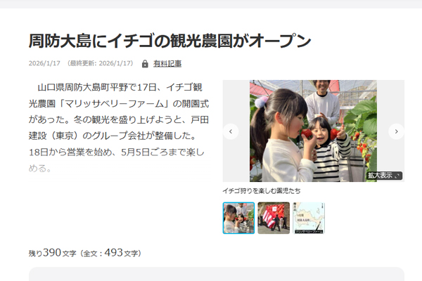 中國新聞デジタル「いちご農園マリッサベリーファーム」記事を掲載いただきました